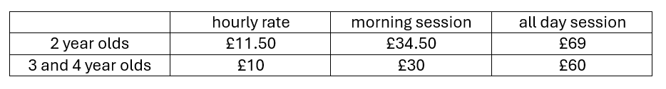 Please be aware that we try to keep our charges to a minimum, they allow us to continue to operate and offer the excellent service we are renowned for. Unfortunately, over a decade of Government underfunding means that our charges, while not mandatory (other than non-funded session charges) if not paid, mean we cannot exist as a business and our preschool will close so we thank you for your support.